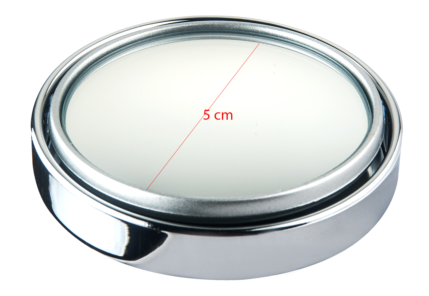 Tamaño del espejo: Espejo diámetro 5 cm Tamaño base giratoria: Diámetro 5,3 cm Tamaño base: Diámetro 5,8 cm Alto: 1,5 cm